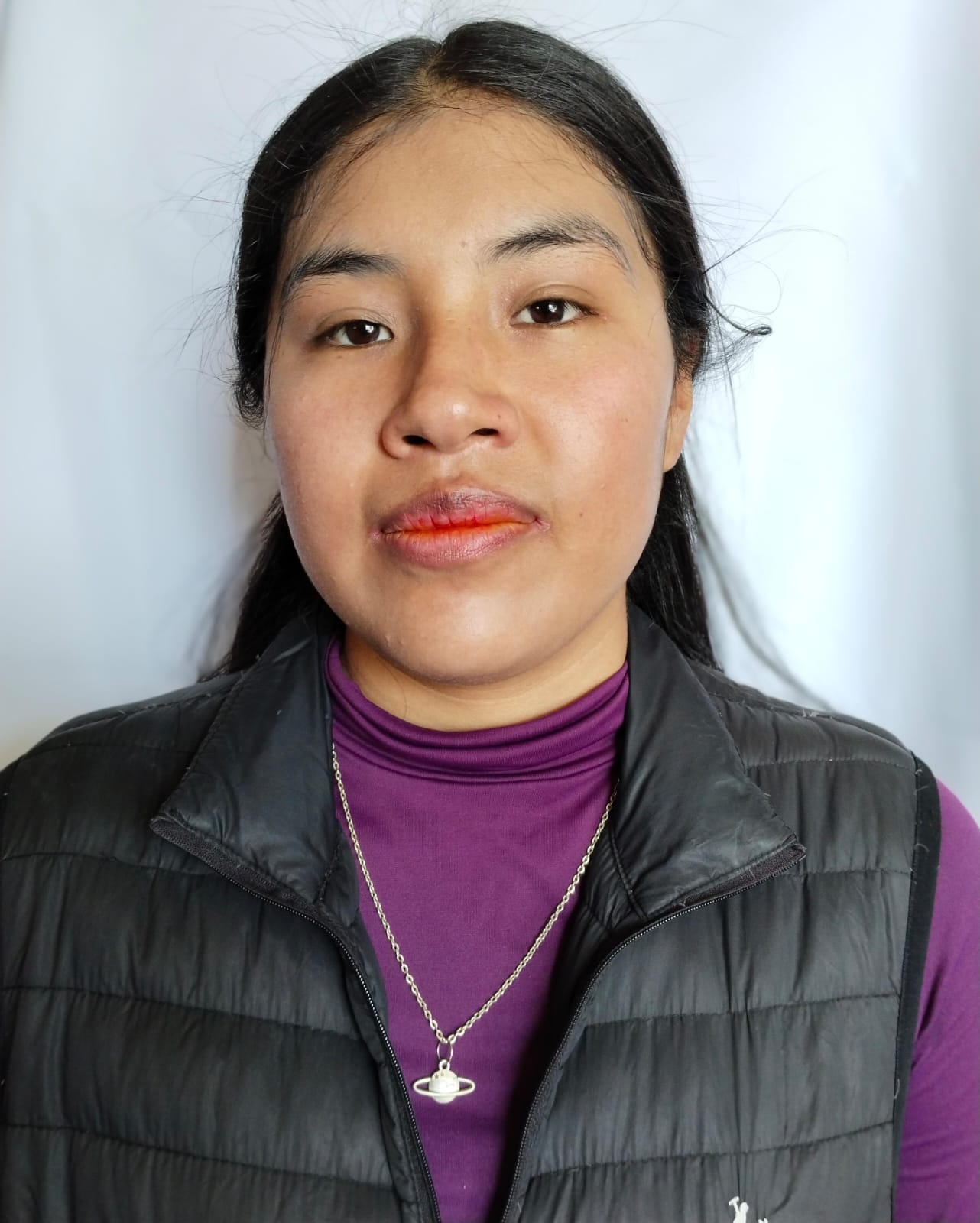 Observamos el rostro de una joven, podemos ver algunas expresiones faciales, la técnica usada es retrato (ISO 497),(f. 2.0), se enfoca siempre en los ojos, ya que son el punto de mayor conexión emocional, foto tomada en cámara V30lite,fecha de creación 06/04/25.