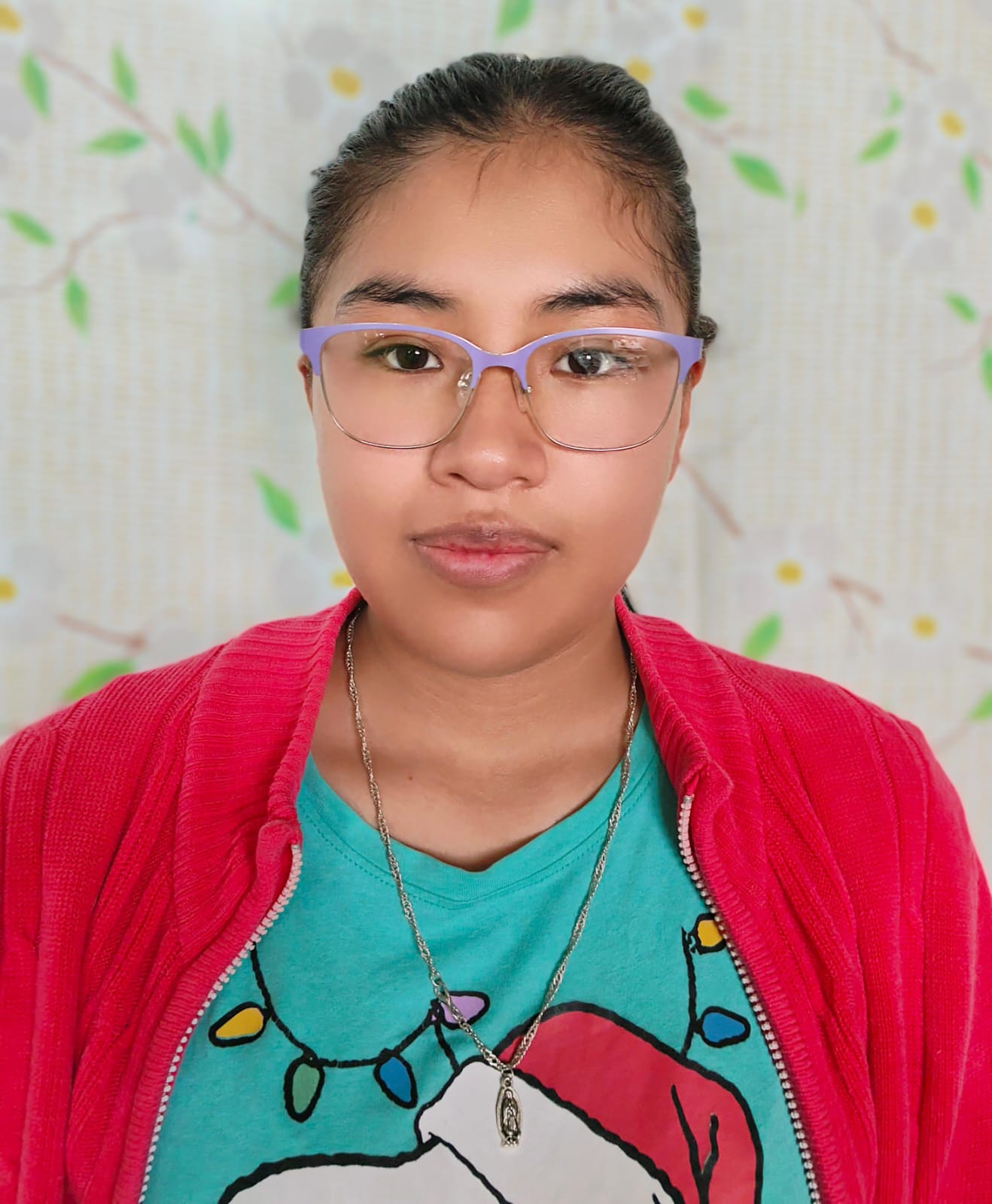La foto muestra un retrato de una joven con lentes, enfocada al centro de la composición.