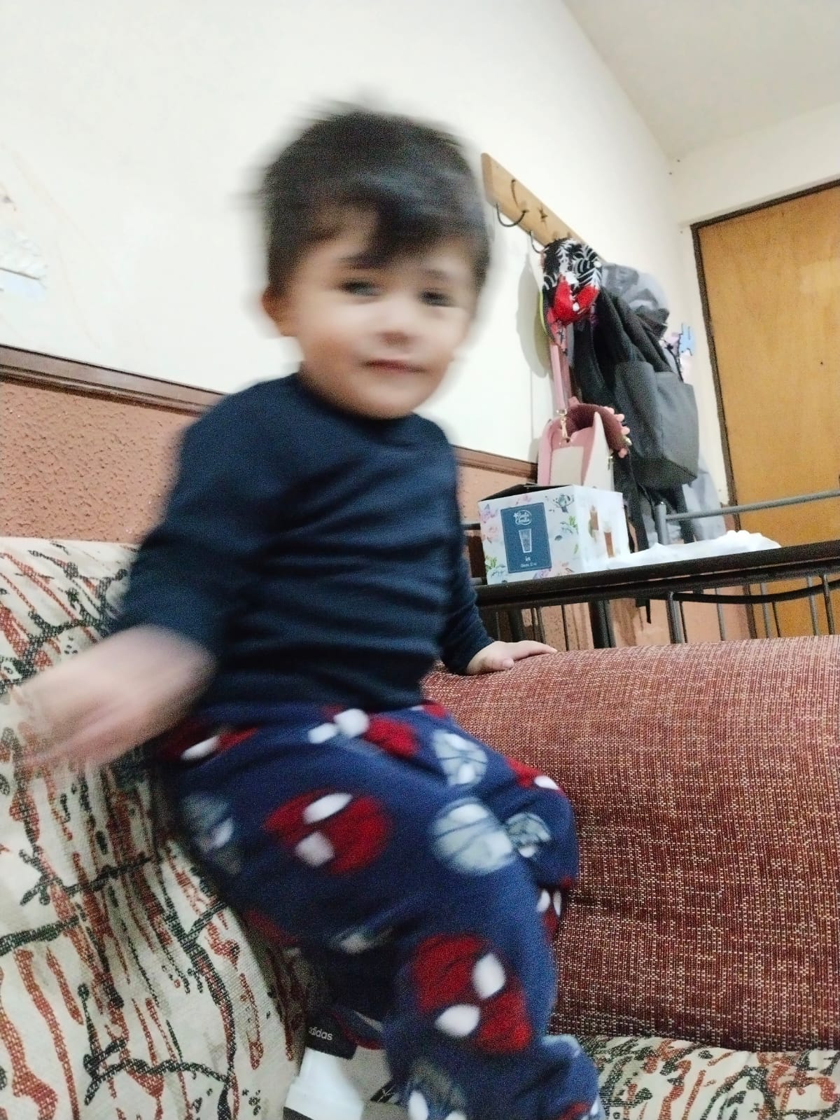 La foto muestra a un niño en movimiento, capturado con una velocidad de obturación lenta (1/50s), esto genera un efecto borroso en su rostro y extremidades ,lo cual no se logra capturar con claridad, foto tomada con cámara V30lite, fecha de creación 02/05/25.